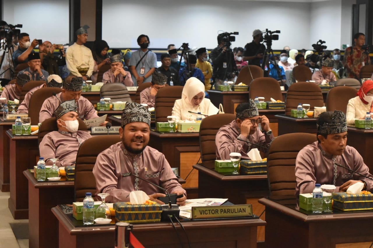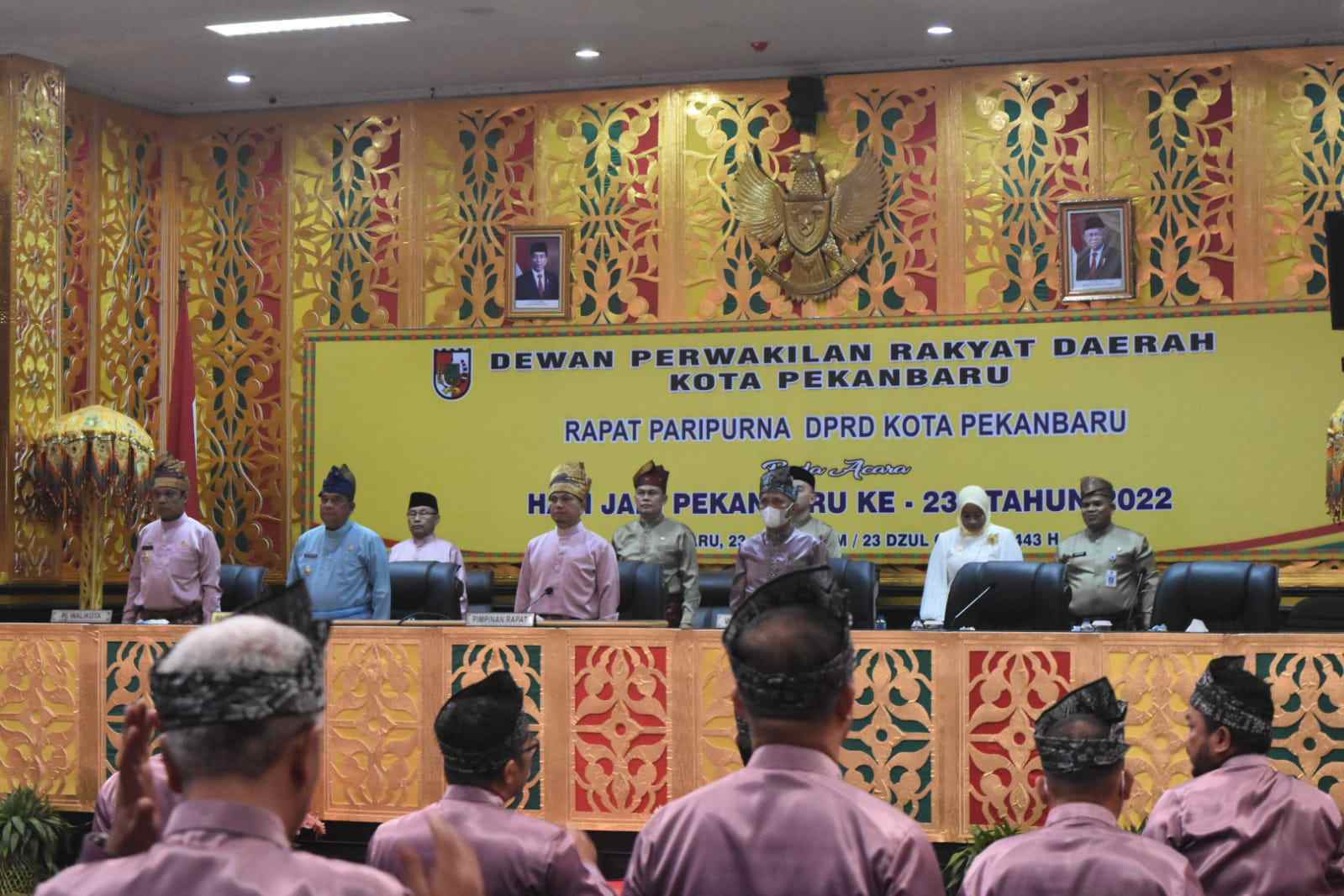 PEKANBARU - Rapat Paripurna istimewa digelar DPRD Kota Pekanbaru dalam rangka HUT ke-238 Pekanbaru, di Balai Payung Sekaki gedung DPRD kota Pekanbaru, Kamis (23/6/2022).