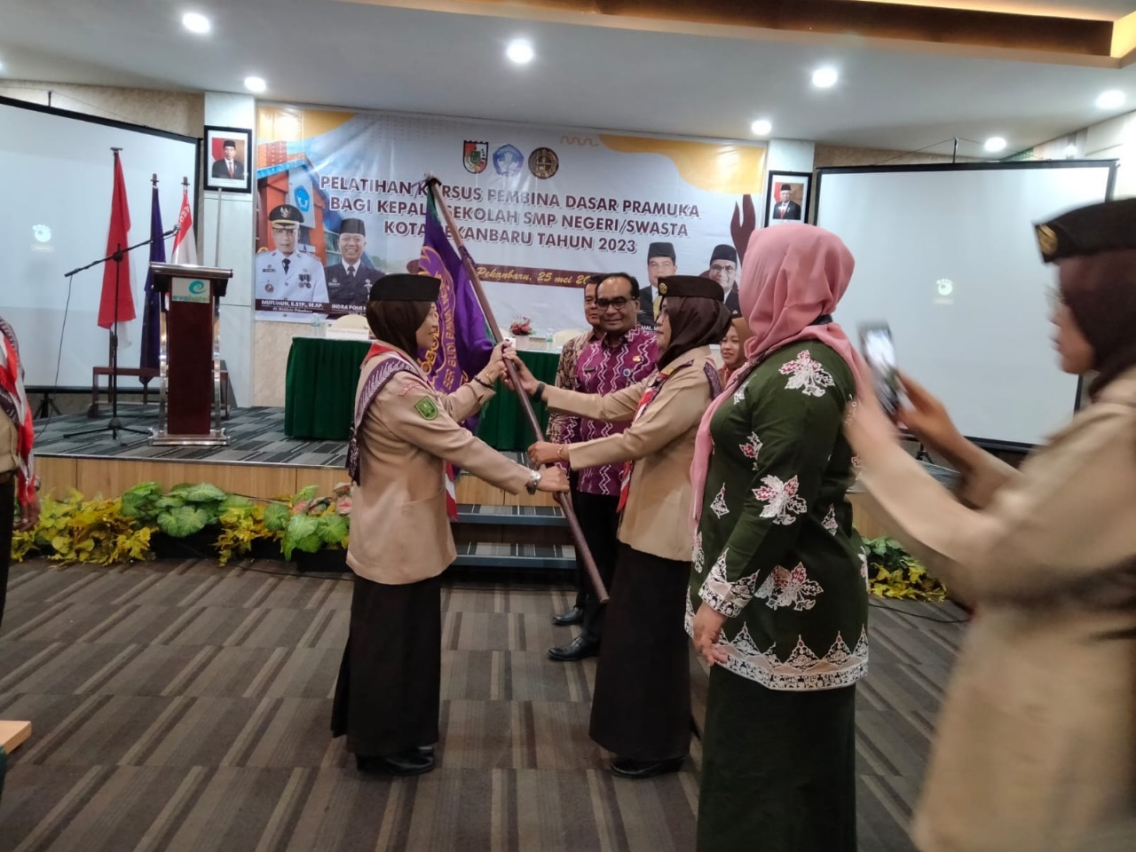 Diketahui, Sebanyak 100 Kepala Sekolah atau perwakilannya dengan semangat mengikuti kegiatan Pelatihan Kursus Pembina Dasar Pramuka Bagi Kepala SMP Negeri/Swasta Kota Pekanbaru Tahun 2023 yang bertempat di Hotel Evo, Wonorejo – Pekanbaru.