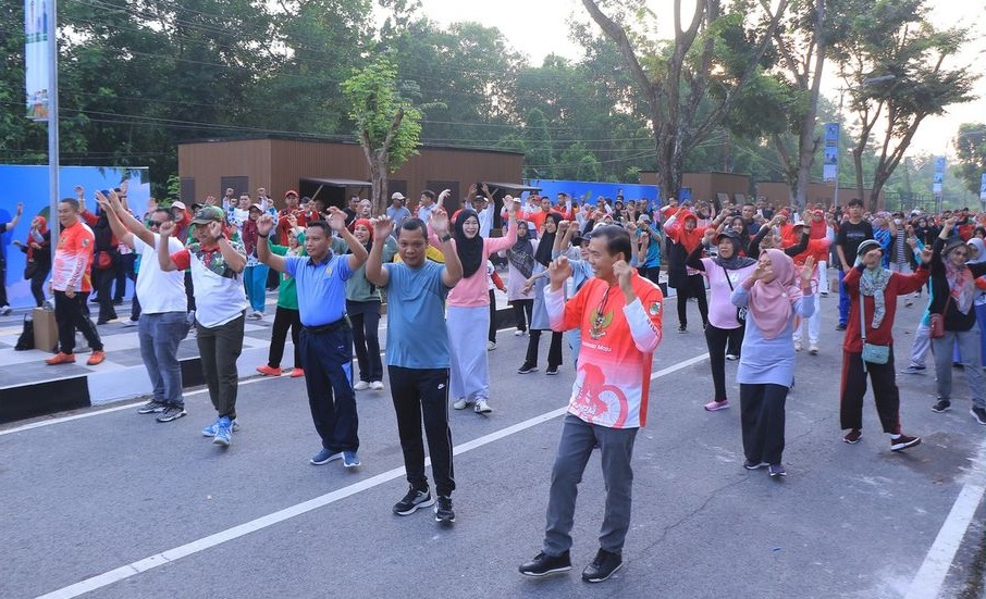 Penjabat (Pj) Wali Kota Pekanbaru, Muflihun bersama istri, Raja Rilla Mustafa Muflihun ikut jalan santai tersebut. Ajang jalan santai ini juga diikuti oleh jajaran pemerintah kota dan unsur Forkopimda.
