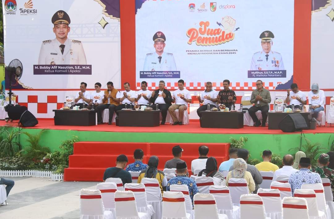 PEKANBARU- Konser Pemuda atau Sua Pemuda yang merupakan bagian dari rangkaian kegiatan Rapat Kerja (Raker) Komwil I Apeksi di Kota Pekanbaru, berlangsung meriah, Kamis (2/5/2024).