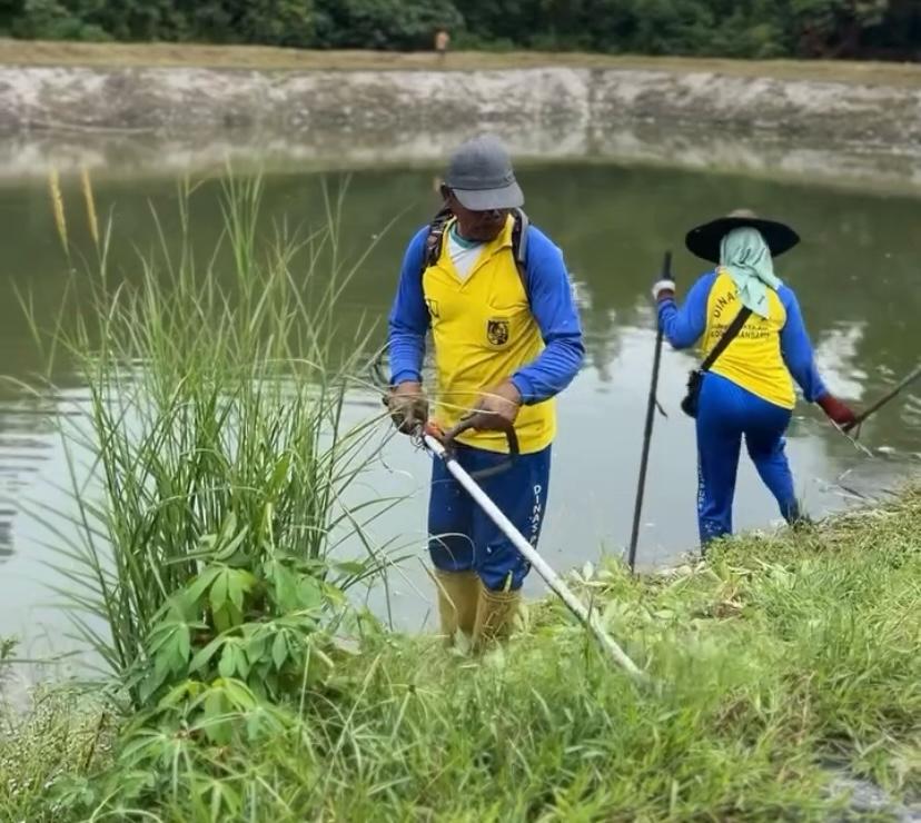 PEKANBARU — Tim Operasi dan Pemeliharaan (OP) dari Dinas Pekerjaan Umum dan Penataan Ruang (PUPR) Kota Pekanbaru melaksanakan pembersihan rumput liar dan sampah di sekitar Waduk Cipta Karya pada Senin (12/8/2024).
