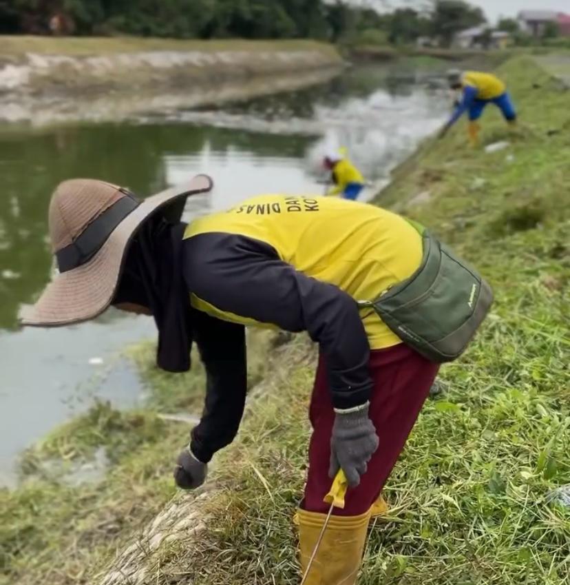 Pasukan kuning OP Dinas PUPR yang terlibat dalam kegiatan ini bekerja menyisir area sekitar waduk, membersihkan rumput yang tumbuh liar di sepanjang saluran air, serta mengangkat sampah yang menumpuk di dalam parit dan sungai kecil. Proses ini dilakukan untuk memastikan aliran air kembali normal dan mengurangi risiko penyumbatan yang dapat memicu genangan.
