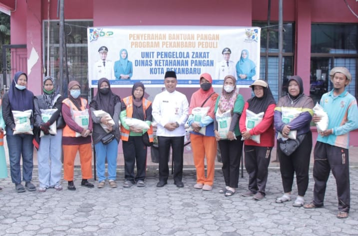 PEKANBARU - Wali Kota (Wako) Pekanbaru, Agung Nugroho menyalurkan bantuan pangan ke ribuan petugas kebersihan di Kota Bertuah, Senin (13/10) pagi.
