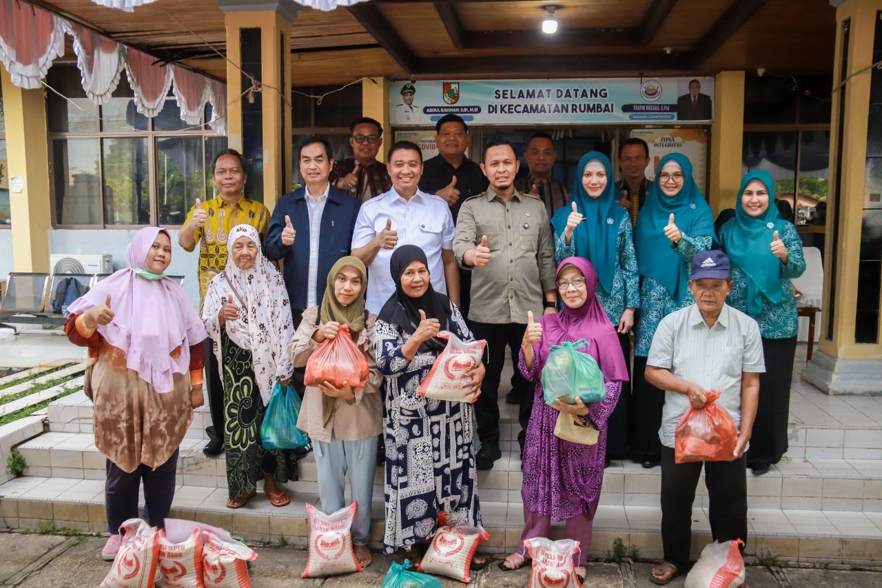 Bantuan tersebut diserahkan secara simbolis oleh Walikota Pekanbaru Agung Nugroho dan Wakil Walikota Markarius Anwar, bertempat di halaman kantor Kecamatan Rumbai, Kamis (11/9/2025).